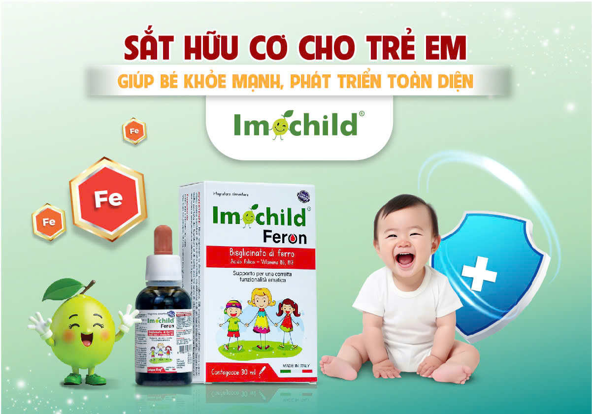 Cha mẹ có thể tham khảo thêm: Sắt hữu cơ dạng giọt Imochild Feron nhập khẩu nguyên chai từ Ý, dễ hấp thu, an toàn cho trẻ.