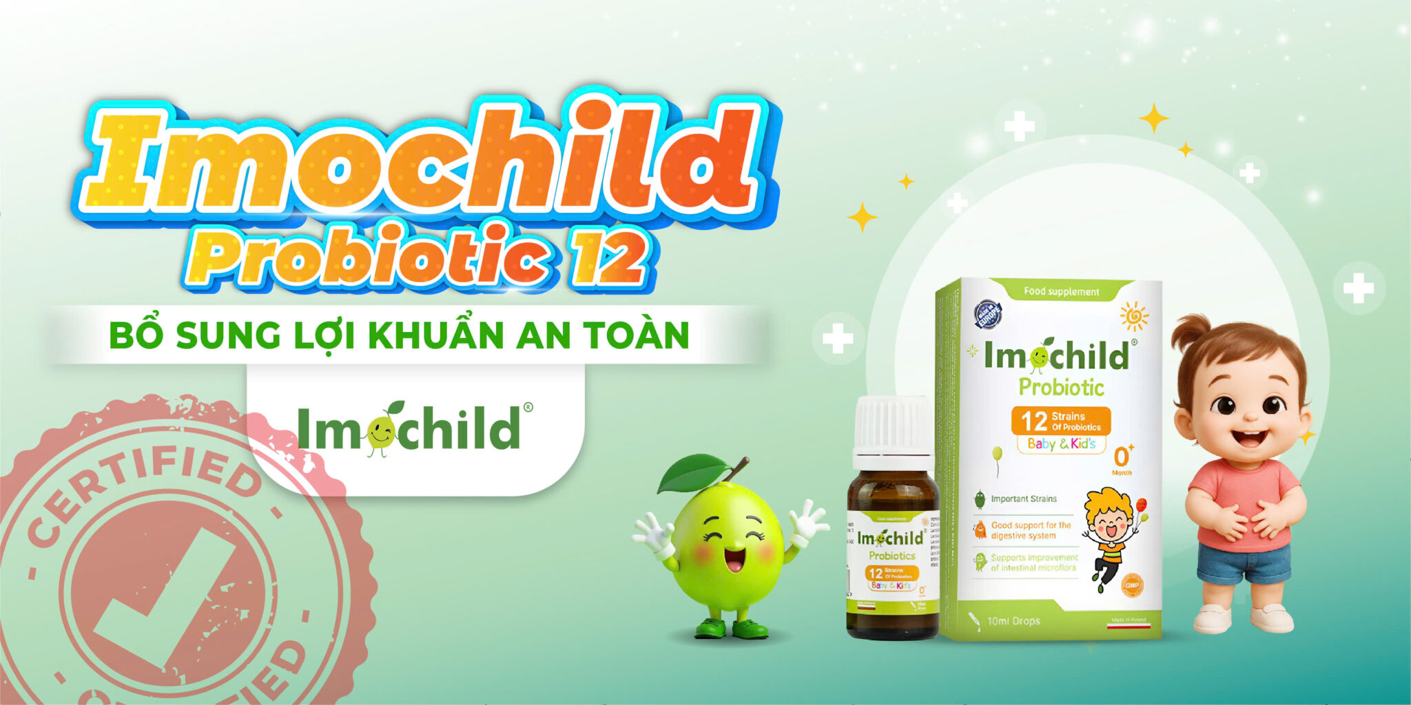 Imochild Probiotic 12: Men vi sinh hỗ trợ tiêu hóa cho trẻ