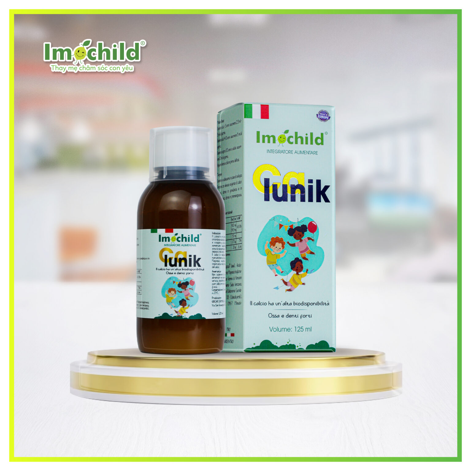 Một ví dụ thuộc nhóm này là Imochild Calunik. Đây là sản phẩm sử dụng canxi Lipocal kết hợp D3, K2 MK7 và magie, giúp hỗ trợ hấp thu canxi tốt hơn so với nhiều dạng canxi truyền thống. Đây cũng là một lựa chọn phù hợp khi bổ sung canxi cho trẻ. Điểm đáng chú ý là sản phẩm được bào chế dạng lỏng, giúp trẻ nhỏ dễ uống hơn so với dạng viên.